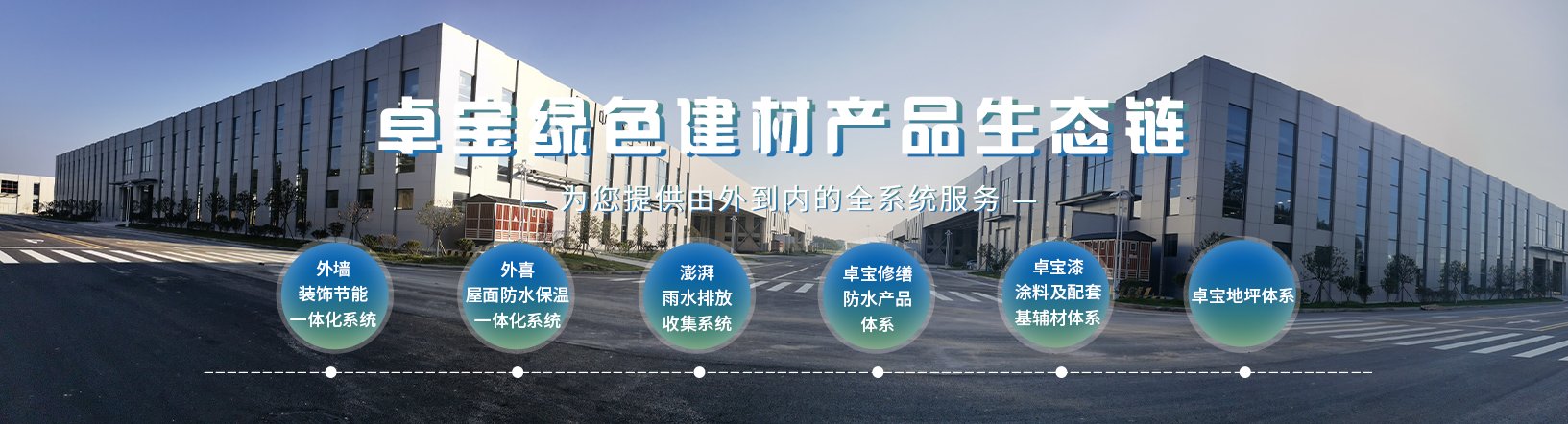 湖北卓寶建筑節(jié)能科技有限公司是卓寶集團(tuán)旗下全資子公司,公司將綠色建筑理念和卓寶創(chuàng)新基因深度融合,打造了涵蓋外墻裝飾節(jié)能一體化、防水保溫一體化、海綿城市雨水收集排放、內(nèi)外墻涂料&基輔材、防水修繕、建筑地坪“六位一體”綠色產(chǎn)品生態(tài)鏈,提供自屋面到地面,自外墻到內(nèi)墻,及防火防腐等一系列功能型綠色建材,適用于外圍護(hù)、內(nèi)裝飾的全系統(tǒng)服務(wù)。通過自身研發(fā)優(yōu)勢(shì),累計(jì)申請(qǐng)百余項(xiàng)國(guó)家專利,并參與多項(xiàng)國(guó)家標(biāo)準(zhǔn)、地方標(biāo)準(zhǔn)制定,保障了每一塊出廠產(chǎn)品的質(zhì)量,為客戶提供質(zhì)量保障。